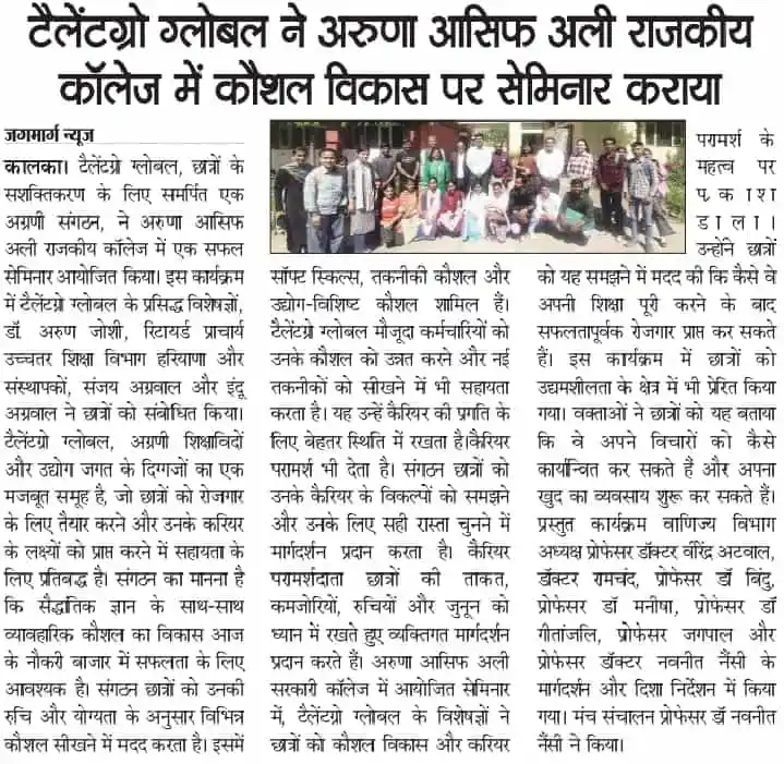 Skill development seminar at Arun Asif Ali Government College by TalentGro Global
