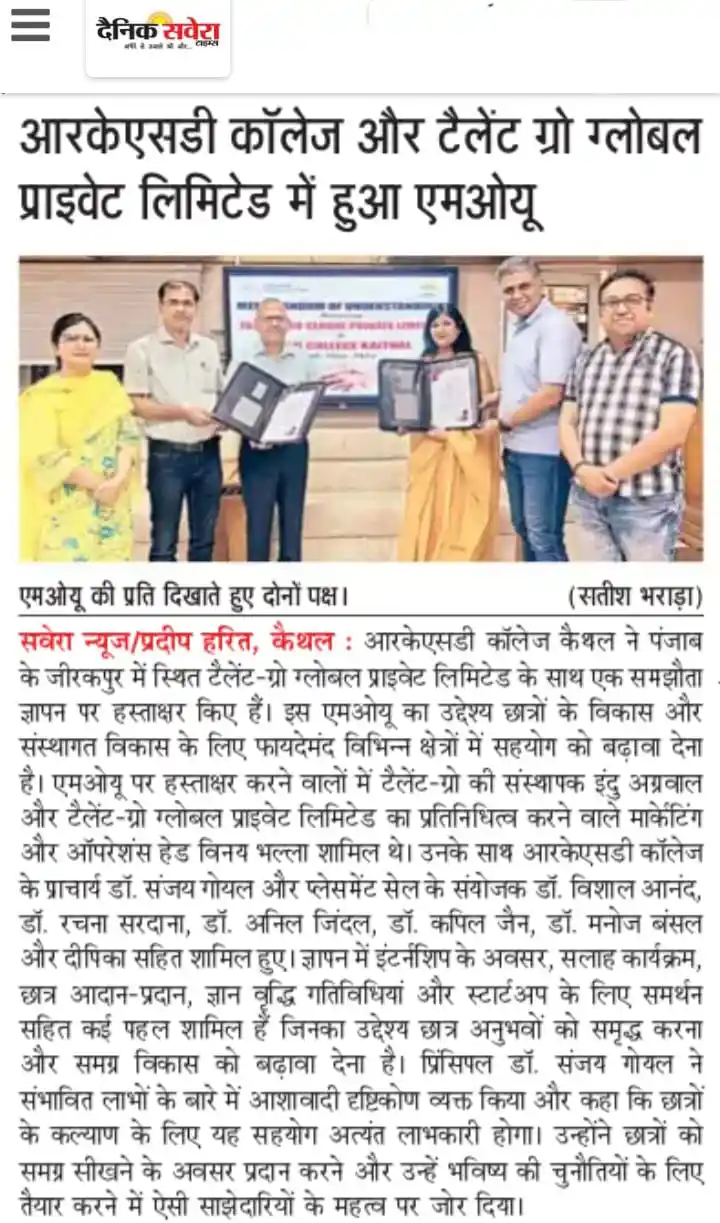 RKSD College and TalentGro Global sign MoU for student development and collaboration