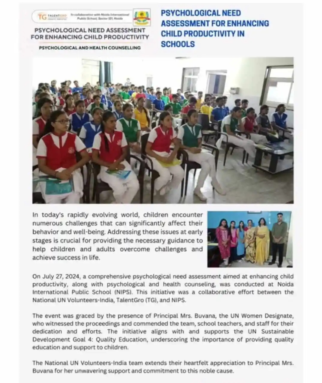 Psychological need assessment workshop for child productivity at Noida International Public School by TalentGro Global