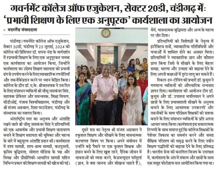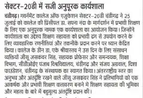 GCE-20 workshop on effective teaching in Chandigarh newspaper clipping by TalentGro Global