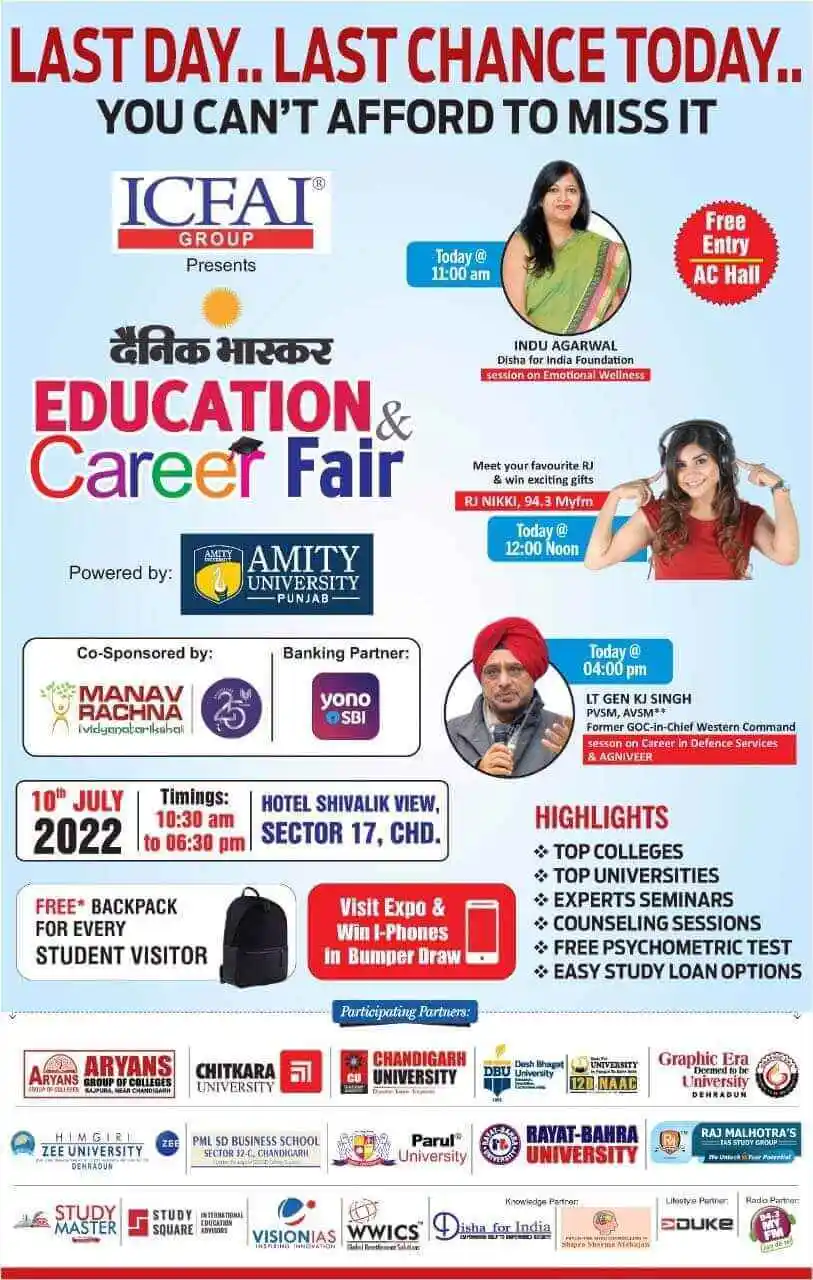 Education Career Fair Chandigarh 2022 with Indu Aggarwal, RJ Nikki, Lt Gen KJ Singh by TalentGro Global