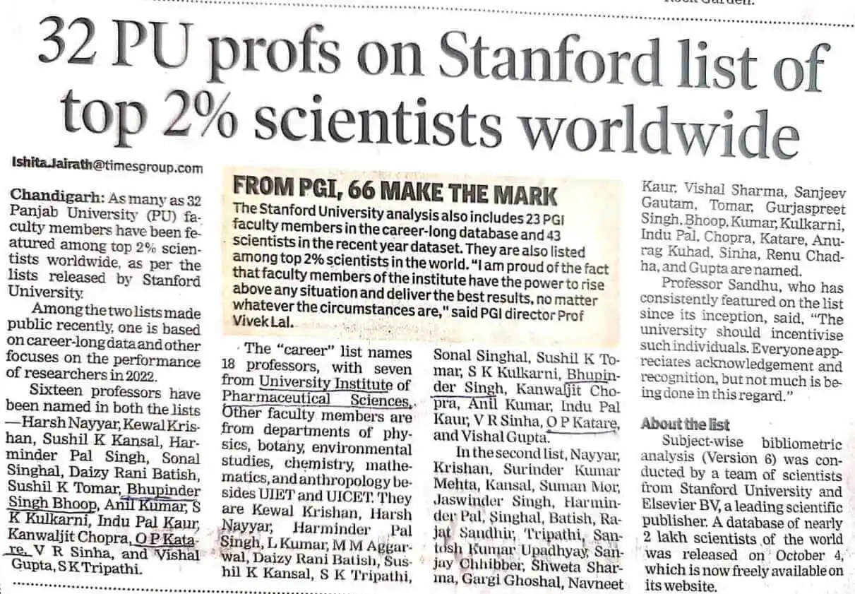 PU Professor Awarded for Pharma Research News by TalentGro Global