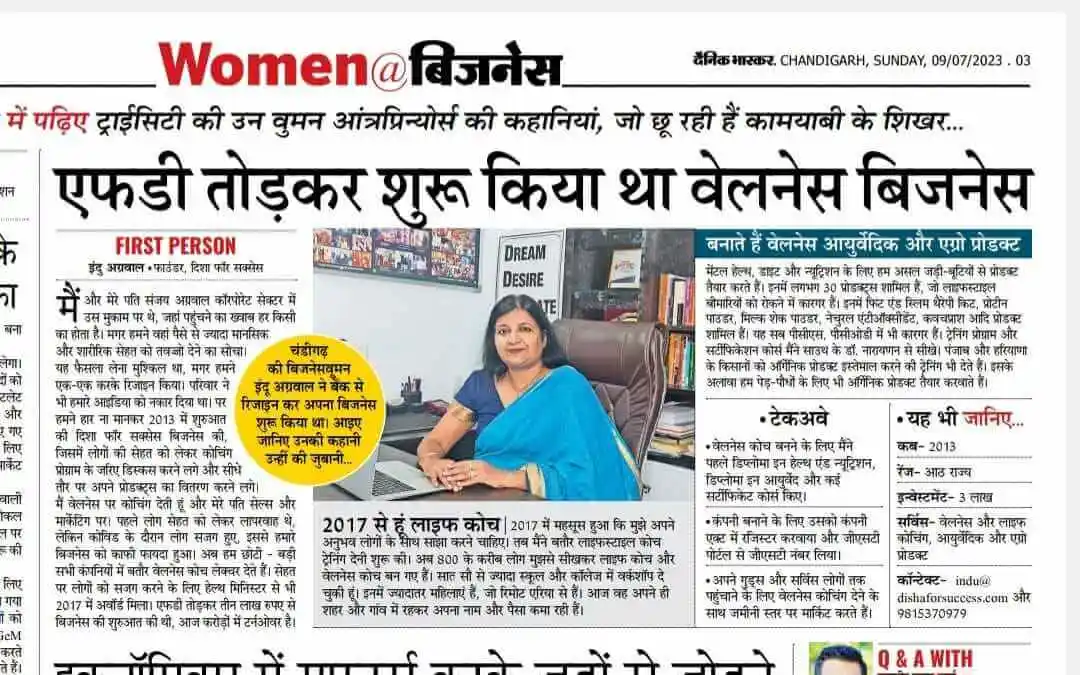 Emotional wellness expert Indu Aggarwal featured in newspaper article