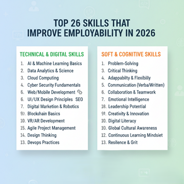 In 2026, employability isn’t decided by qualifications alone. Employers increasingly hire based on skills that match real job requirements, especially in digital, communication, and adaptive capability. According to the India Skills Report 2026, overall employability in India has risen to 56.35%, driven by digital upskilling and AI integration across workplaces.